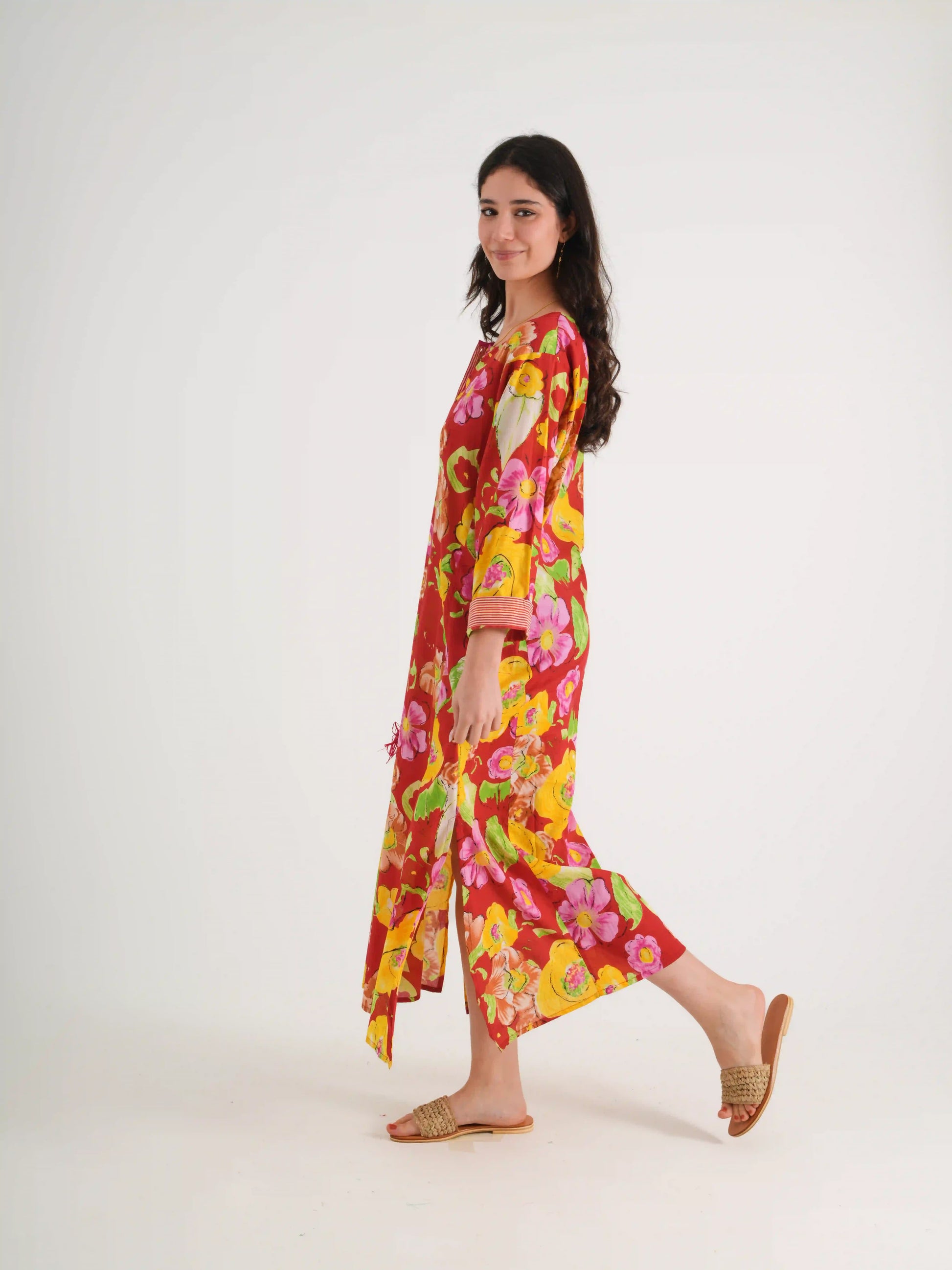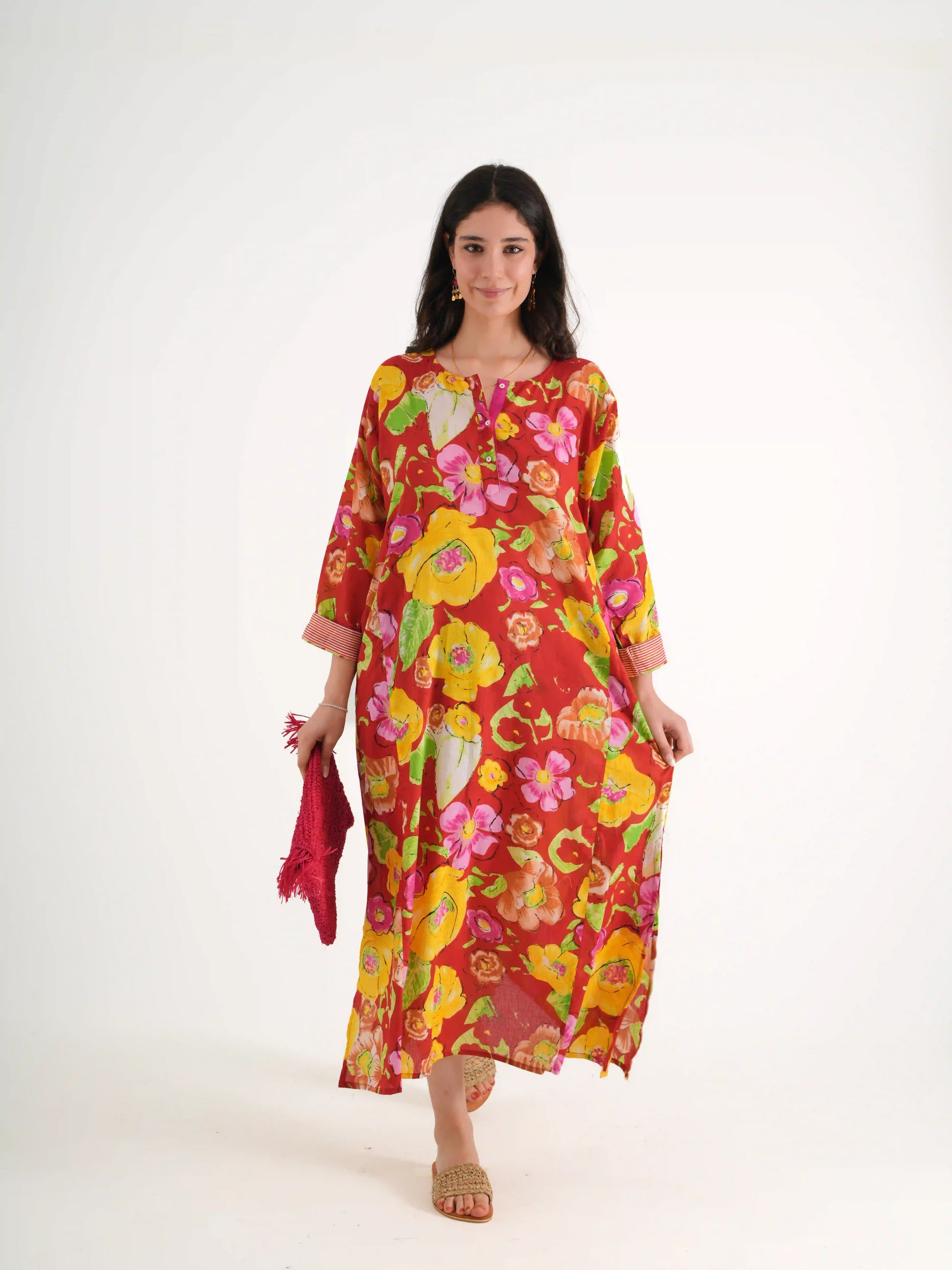 100 % PAMUKLU DÜĞME DETAYLI EL BASKILI ,MAXI BOY