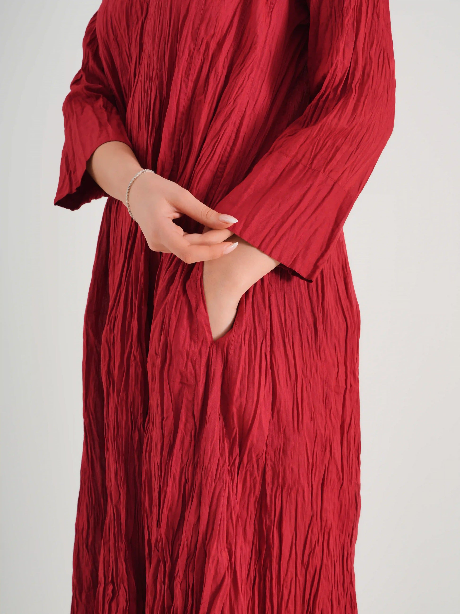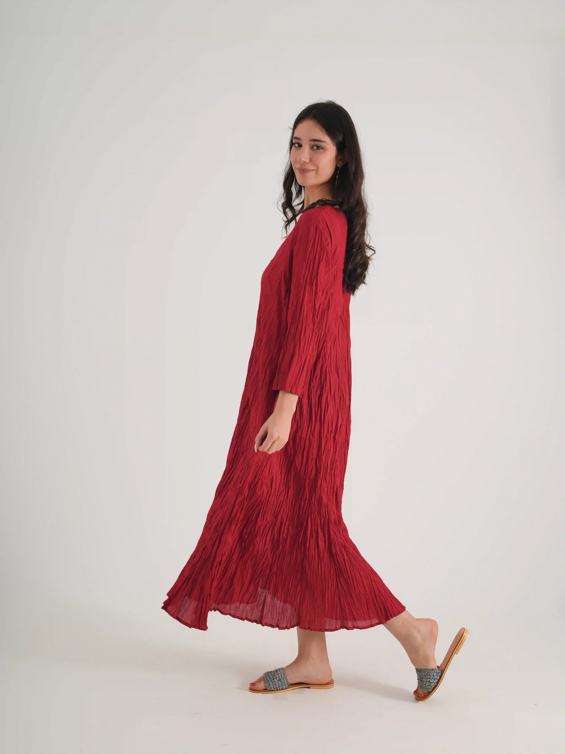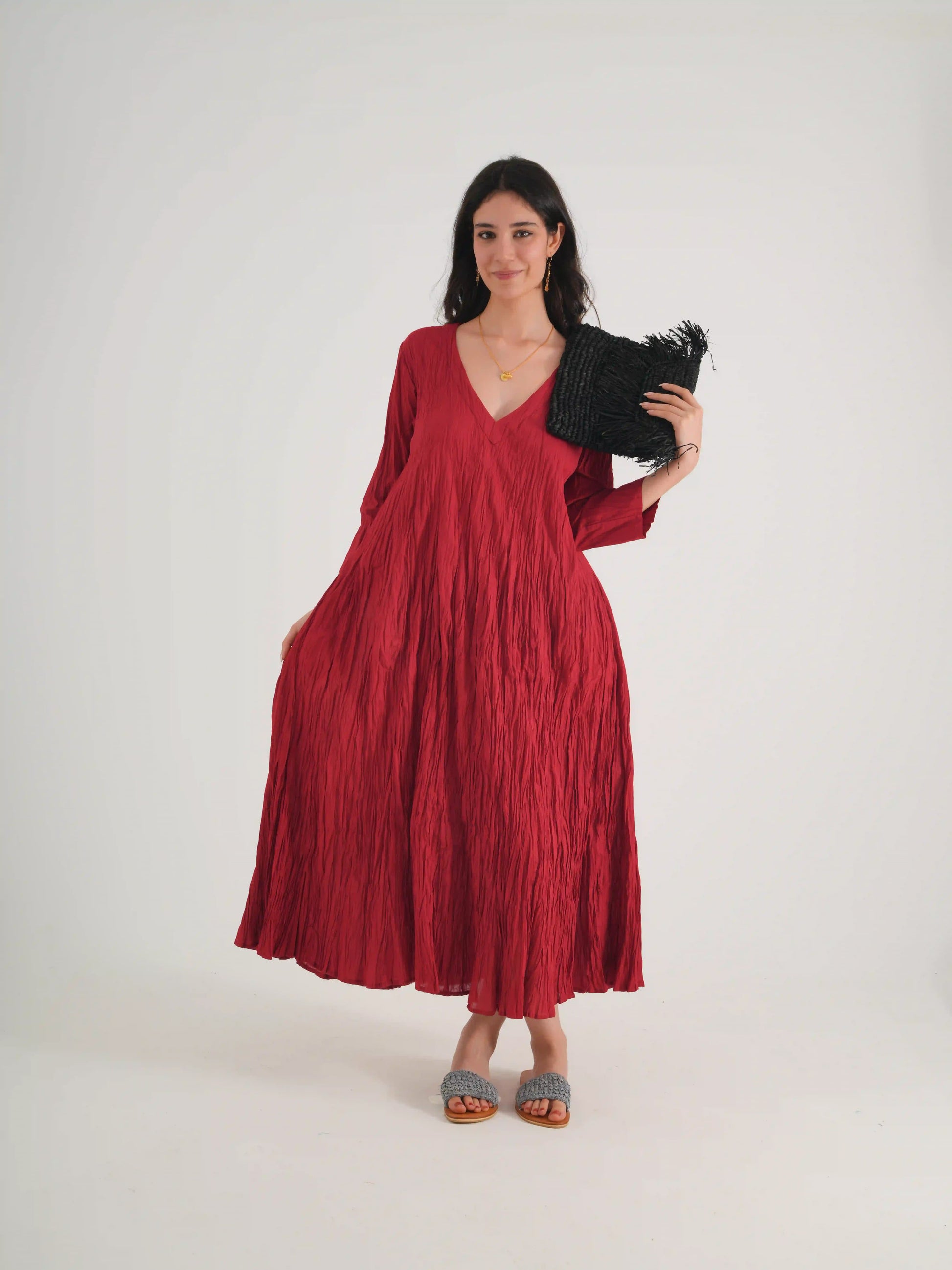 100 % PAMUKLU KRINKIL DÜZ V YAKA